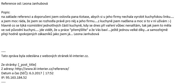 na zaklade referenci a doporučeni jsem oslovila pana Kotase, abych si u jeho firmy nechala vyrobit kuchyňskou linku….